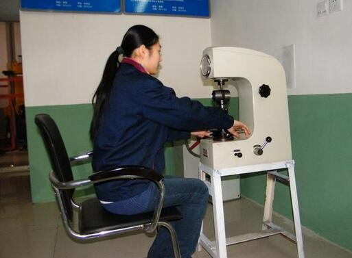 圖(3)北京耐默公司杜工正在檢測雙金屬耐磨鋼板硬度值