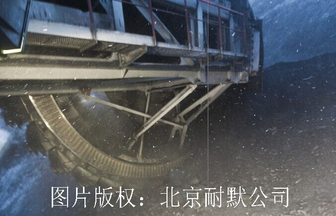(2)斗輪挖掘機正在作業,可以看出,前端工作區為耐磨復合鋼板